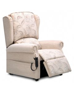 LILAC KNUCKLE RISE AND RECLINE CHAIRThe Lilac Knuckle Care Recliner range has been ergomically designed for optimum comfort and support. The soft, fibre filled back includes lateral support cushions in addition to a supportive headroll. Offered in four sizes and with a choice of Dark Beech knuckles or Light Oak knuckles and a choice of Dual Motor or Single Motor. Options include adjustable lumbar and aqua Clean fabrics.