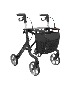 Server HD RollatorLarge shopping bag for carrying up to 5 kg User friendly and easily adjustable handle height Patented, red, "Click & Safe" safety catch Unique carrying handle: ergonomic handle grips under the mounting bars for lifting and carrying the rollator All-round safety reflectors available for shopping bag, frame and handles Large selection of accessories such as backrest straps, bags, tray, one-handed brake operation, slowdown brake and rollator umbrella